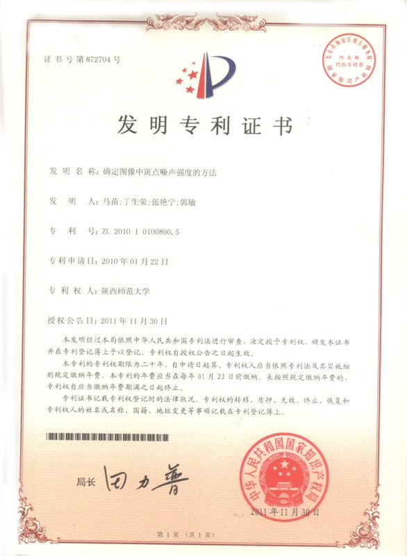 发明专利-确定图像中斑点噪声强度的方法