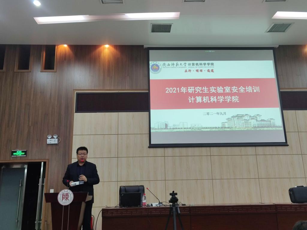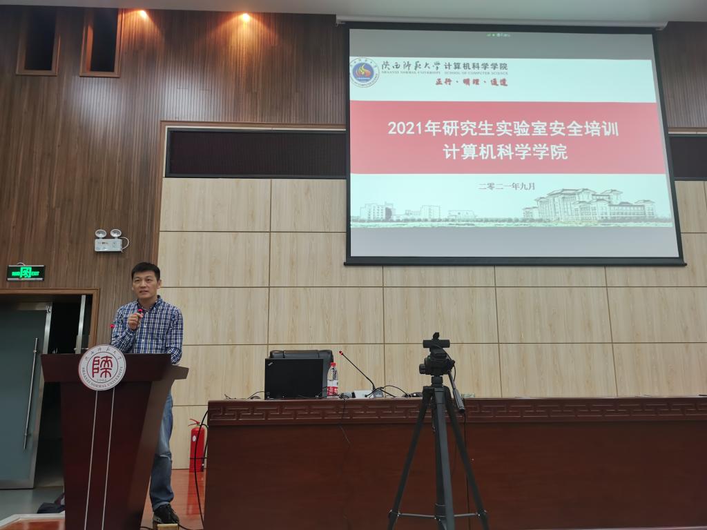 为认真落实实验室安全准入机制,加强必赢官网新入校师生安全意识,规范实验操作方法,提高师生应急自救互救能力,预防和减少安全事故发生。2021年9月26日晚上7点,必赢官网组织了实验室安全准入培训,培训会议主会场设置在文澜楼B段1层报告厅,同时在文津楼C 段3412报告厅设置在线会场。必赢官网邀请西安市五进消防科教站的晁奭昕教官进行主讲,学院党委书记王耀明、全体实验室工作人员、研究生辅导员、新入职教师及2021级全体研究生参加了培训活动。会议由董春生副院长主持。