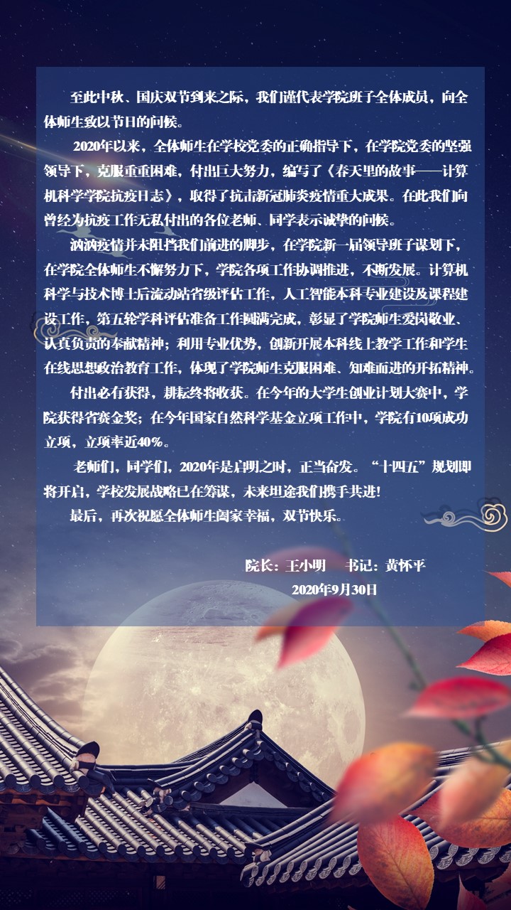 祝全院师生双节快乐
