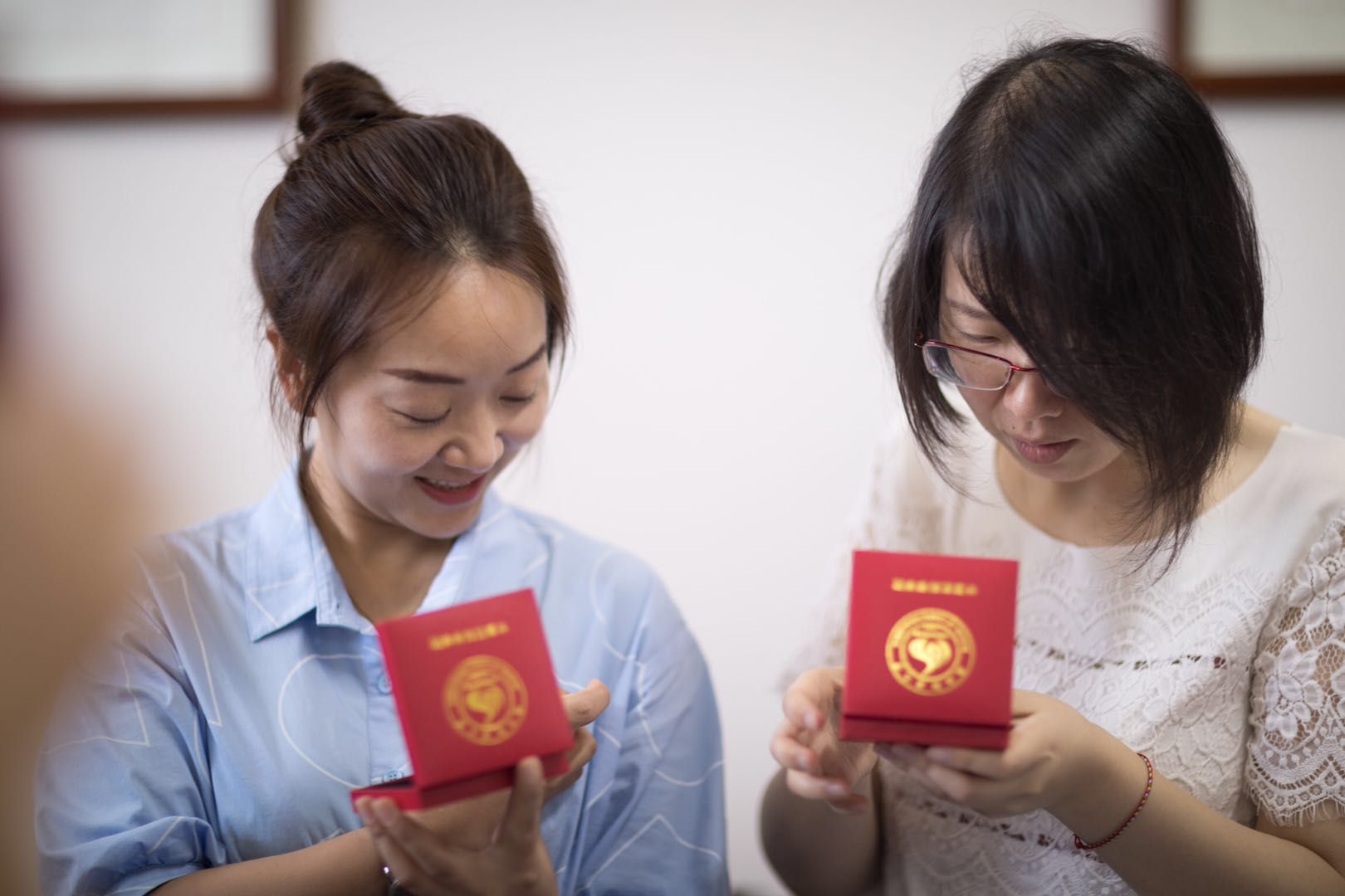 裘国永老师向各位校友赠送院徽,院徽背面刻有各位校友的名字和学号,是独一无二的纪念品,代表了学院对校友们的祝福。