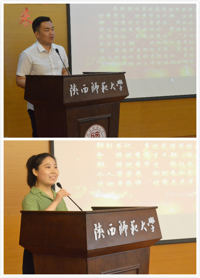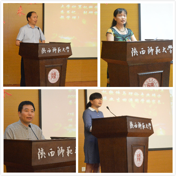 在庄严的奏唱国歌环节过后,与会代表分别进行发言。首先是教师代表裘国永老师。裘国永老师回忆了自己与2018届毕业生度过的时光,结合自己的任教经历对2018届毕业生给予最美好的祝福和期许。2018届硕士毕业生田源同学的家长—西安师范附属小学李燕老师作为家长代表,表达了自己对学校、学院精心培养人才的感谢,同时勉励各位毕业生要饮水思源、常怀感恩之心,关注学校、学院发展,常回来看看。2018届毕业生代表侯思成同学和任仰同学分别回顾了自己大学四年的学习生活与成长历程,对相信、帮助、鼓励自己的老师与同学们表达了衷心的谢意,并对未来的发展提出了憧憬和展望。最后,党委书记黄怀平发表讲话,他语重心长地向全体毕业生提出了几点殷切希望:一是希望毕业生能认真对待自己的第一份工作、珍惜第一份工作、努力干成第一份工作;二是做任何事情时都要能打开局面,注重工作细节,按时保质完成各项任务;三是制定合理的职业规划,并且能坚持不懈完成每一个小的目标;四是坚持学习。既要不断更新自己的专业知识库,也要加强人文知识学习,实现全面发展。