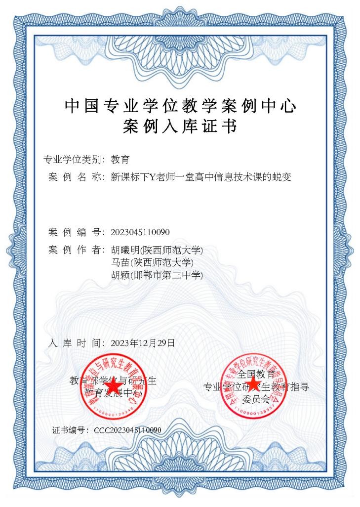 近日,全国教育专业学位研究生教指委发布《关于公布第五届教育专业学位教学案例征集工作评审结果的通知》,必赢官网胡曦明、马苗联合邯郸市第三中学胡颖开发的“新课标下Y老师一堂高中信息技术课的蜕变”教学案例入选中国专业学位教学案例中心案例库。这是必赢官网专业学位教学案例首次入国家级教学案例库。