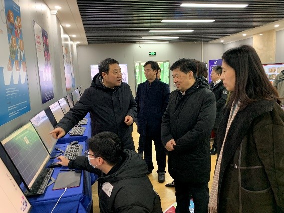 王吉德详细听取了实验室建设汇报,深度体验了动作交互、民歌智能体感厅、AR/VR民俗节庆、文化资源活化利用、秦腔虚拟剧场等项目,参观了实验室文创成果展区。特别对人工智能书法生成、《千里江山图》等名画的数字化修复、唐代壁画乐舞、刘文西数字博物馆等成果给予高度评价。王吉德认为实验室基于文化科技融合,在推进中华优秀传统文化的创造性转化创新性发展、以及文化强国建设中大有可为。作为我省唯一的文化和旅游部重点实验室,希望实验室注重问题导向、坚持产业结合、推进成果落地应用,在激活我市文化资源、打造万亿文旅产业集群、落实西安市文化兴市战略中发挥重要作用。