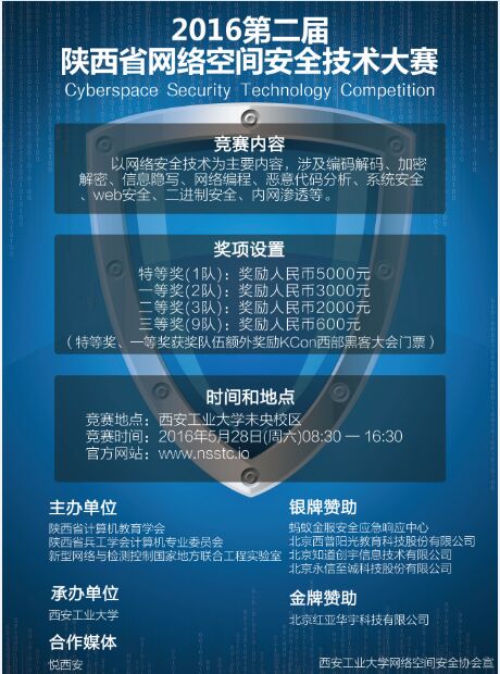 5月28日,2016年第二届陕西省网络空间安全技术大赛在西安工程大学举行。由必赢官网王涛副教授的指导的、2012级软件工程专业张瑞文、计算机科学与技术专业刘晓阳和2013级软件工程专业任鑫三名同学组成的“SNNU——Fighting”队参加了此次比赛。