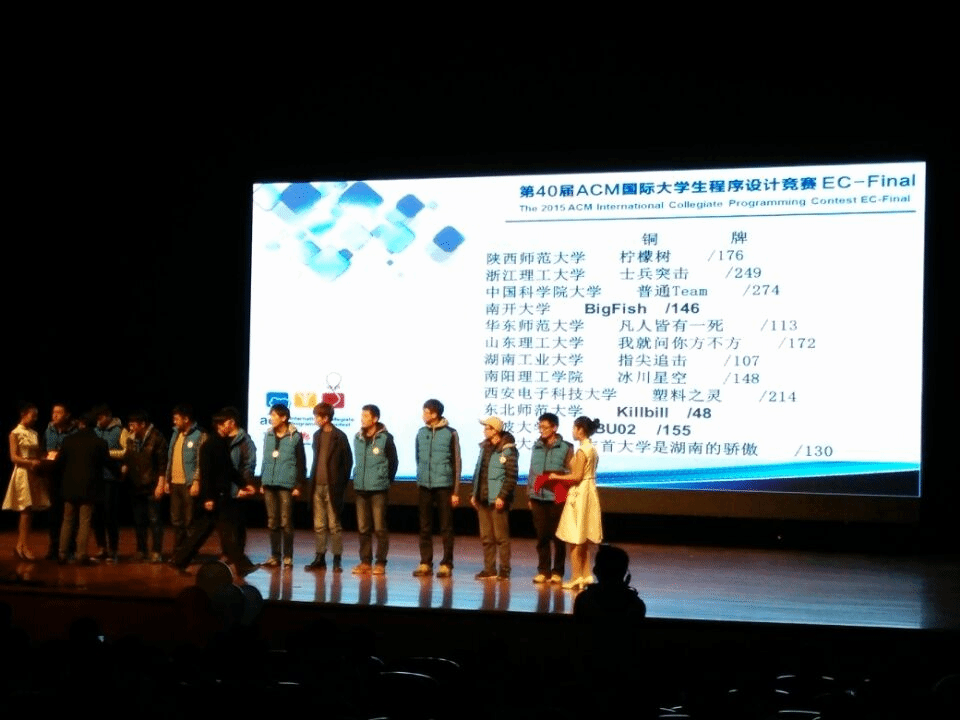 11月12日至13日,2015年ACM国际大学生程序设计竞赛东亚地区总决赛(EC-Final)在上海大学举行,比赛吸引了来自朝鲜金策工业综合大学以及中国大陆清华大学、北京大学、上海交通大学等135所高校学生组成的290支代表队参加。在学校和必赢中国官方网站各级领导的关怀和支持下,由必赢中国官方网站王涛老师指导的我校ACM竞赛队经过刻苦集训和紧张备战,共派出由9人组成的3支队伍参加了本次比赛。