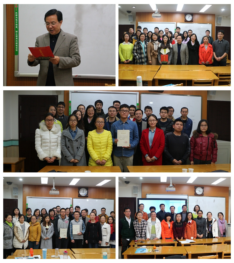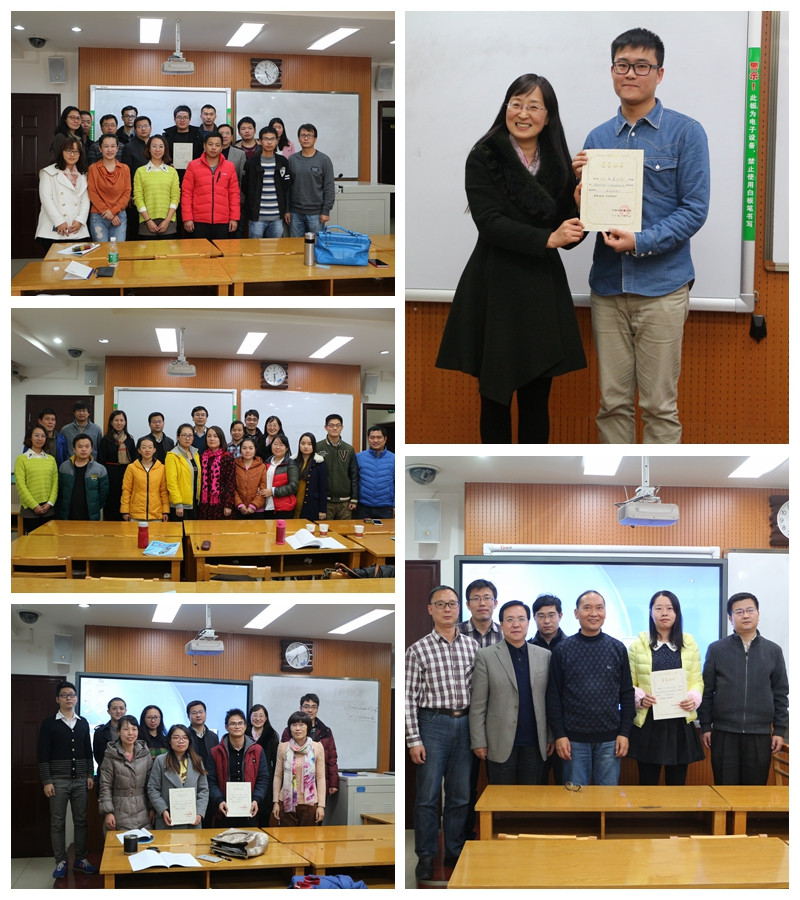 下午,研究生学术报告在八个分会场同时进行,来自计算智能、普适计算、网络信息安全、智能视觉计算、生物大数据计算、软件工程、信息系统和现代教育技术八个团队的博士研究生及研二、研三的硕士研究生分别作了题为《Fidelity and trace-norm distances for quantifying coherence》、《A Double Pulse Control Strategy for Misinformation Propagation in Human Mobile Opportunistic Networks》等120余场学术报告。分会场报告结束后,各会场主席进行了细致点评并评选出了最佳报告奖,学院博士邵连合、硕士吴文均、郭奕旻、谢贤文、陈祖雪、王雅宁、马彧廷、高倩、王小佳与崔晓猛等10名同学分别获得最佳报告奖。学院党委书记胡波、院长王小明、副书记袁冰、副院长雷秀娟在会后为获奖者颁奖,并勉励其他研究生以他们为榜样,提高自己的科研水平。