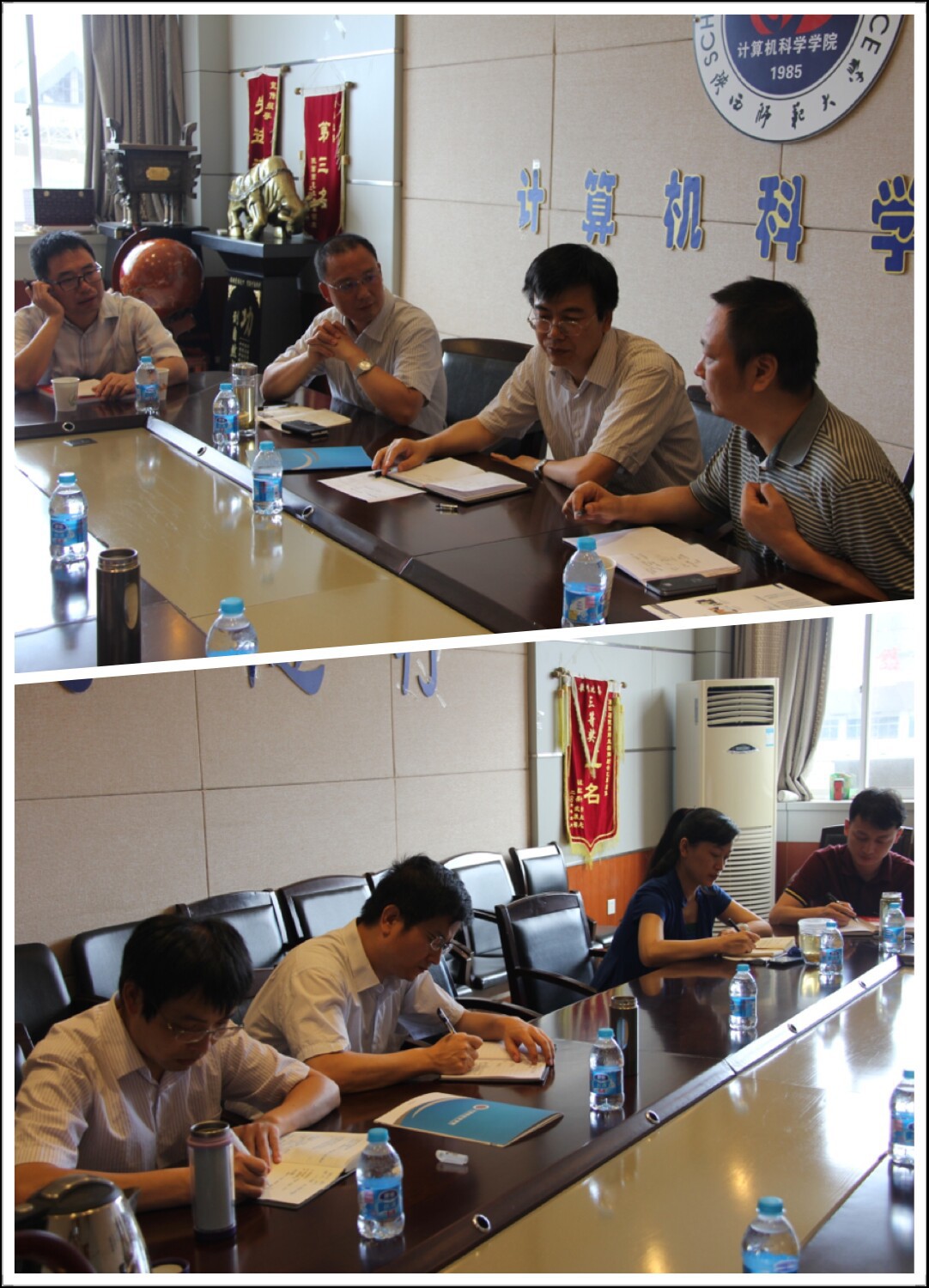 首先,李永明院长代表学院欢迎陈建蜀总经理的到来,并将学院目前的人才培养模式、实验室建设现状、毕业生流向等情况向陈总做了简要介绍,特别就陈总关注的软件工程实践环节以及工程硕士人才培养基地建设等问题做了深入探讨;随后,学院分管领导就陈总所关注的方面分别做了细致的补充介绍。