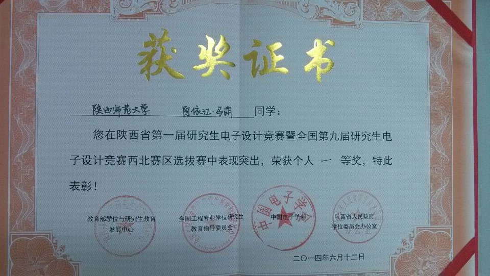 2014年6月10日至6月12日,陕西省第一届研究生电子设计竞赛暨全国第九届研究生电子设计竞赛西北赛区选拔赛在西安电子科技大学举行,来自西北大学、西北工业大学、西安交通大学、兰州大学、兰州交通大学、必赢中国官方网站、西安电子科技大学等多所西北地区高校的196支队伍参加了此次比赛。本次大赛是由教育部学位与研究生教育发展中心、全国工程专业学位研究生教育指导委员会、中国电子学会联合主办的研究生学科竞赛,大赛的参赛对象包括各个高等院校的在校研究生。