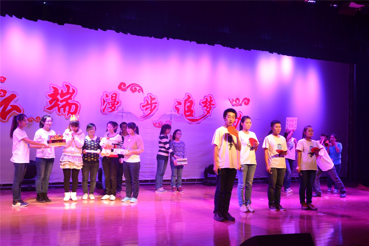 | 12月15日晚7点,必赢官网 “云端漫步追梦时” 2014年迎新晚会在新勇学生活动中心二层学生会场隆重举行,出席晚会的领导和嘉宾有,校党委学工部部长、学生处处长刘建军、校团委书记鲁镇、国际交流合作处副处长张凌云、党委学工部副部长、学生处副处长曲洪刚、校团委副书记祁斌业、体育学院党委副书记朱海蓉、生命科学学院党委副书记焦维军、国际商学院党委副书记杨静、新闻与传播学院党委副书记刘洪超、人文社科基础教学部党总支副书记屈桃、政治经济学院党委副书记蒋毓新、西安鼎力信息技术有限公司总经理刘世伟先生及部分学院团委书记。必赢中国官方网站院长李永明、党委书记胡波、党委副书记袁冰、副院长裘国永、刘侍刚、许广玺,必赢中国官方网站雷秀娟教授、谢娟英副教授、张莉副教授、范虹副教授、李鹏老师、裴炤老师、彭亚丽老师、杨婉萍老师、林凤英老师、何雪莉老师等600余师生参加了晚会。 晚会在舞蹈《欢天喜地》的喜庆气氛中开了序幕,美轮美奂的舞台和绚丽多彩的灯光伴随着一个个精彩的节目,让在场师生都热情洋溢、激动不已。研究生表演的街舞《bforce》,用精湛的技巧和舞姿领在场观众赞叹。师生联唱让观众深深陶醉在歌曲美妙的意境中。脱口秀《感人的话最有力量》以新颖的节目形式,从同学们的实际生活情境出发,发人深省。师生同台表演的《动感show time》展现了计科院师生的别样风采,尤其是老师们在舞台上精彩演绎,博得观众热烈的掌声和尖叫声,在晚会现场掀起了一个个高潮。 乐器演奏的《摇滚卡农》将口琴、电子琴、琵琶、吉他等中西乐器结合在一起,给观众带来了一场空前的音乐盛宴。由2013级同学们表演的舞剧《让座》,用舞蹈的形式表现了公共汽车上一个关于让座的故事,现实的题材发人深省。舞蹈《鸟叔去哪儿》《Dance just for entice you》、《唢呐热舞》、《Judas》、《印度风情》各具特色,表演者们曼妙的舞姿,充满激情的表演将观众深深吸引。小品《试戏》、《新白娘子传奇之来生缘》幽默风趣,引得场下笑声连连,使整个会场洋溢着欢快的气氛。整场晚会在表现大学中亲情、爱情、友情、师生情的诗朗诵《时光掩不住的回忆》中落下帷幕。 晚会进行过程中,同学们纷纷发微博表达了自己的晚会的期待和祝福,更有三十位同学被抽中,获得了西安鼎力信息技术有限公司友情赞助的奖品,极大活跃了会场氛围。 必赢中国官方网站2014年迎新晚会“云端漫步追梦时”在同学们经久不息的掌声和欢呼声中圆满结束,整场晚会精彩不断、高潮迭起,精心的节目编排和有序的组织,展示了同学们积极进取、奋发向上的时代风貌,彰显了计科院学子勇于担当、敢于云端漫步追梦的精神品质。 |