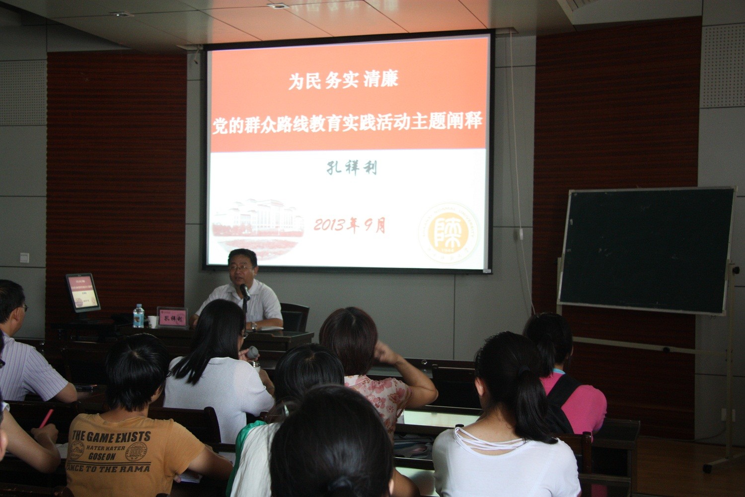 | 为了推进学院更好的开展党的群众路线教育实践活动,为扎实开展党的群众路线教育实践活动提供思想保障,必赢官网于9月12日下午,特别邀请我校党的群众路线教育实践活动宣讲团成员、党委宣传部部长孔祥利教授,在学院报告厅为必赢官网师生党员做了题为《为民务实清廉:党的群众路线教育实践活动主题阐释》的报告。报告会由必赢官网党委书记胡波主持,学院党政领导班子成员、教师党员、学生党员代表聆听了报告。 报告中,孔教授以“为民务实清廉”为核心,从三个方面阐释了党的群众路线教育实践活动的主题。在对“为民务实清廉是党的群众路线时代内涵”的阐述中,孔教授谈到“一切为了群众、一切依靠群众,到群众中来,到群众中去”,是我们党坚持贯彻执行群众路线的经典论述,而现如今,党正面临着执政、改革开放、市场经济和外部环境四大考验,党员干部也面临着精神懈怠、能力不足、脱离群众、消极腐败四大危机。他以苏共为例,深入剖析了党的群众路线的重要性,而深入开展以为民务实清廉为主题的党的群众路线教育实践活动,是实现党的十八大群定的奋斗目标,保持党的先进性和纯洁性,巩固党的执政基础和地位的必然要求,是我党聚人气、顺民意、促改革的重要途径和举措。 接着,孔教授就如何深入理解为民、务实、清廉做了详尽的阐释。为民是坚持党的群众路线的目的。一切为了人民,是我们共产党人的最高追求,中国革命的胜利也正是遵循了得民心者的天下的朴素道理;务实是坚持党的群众路线的途径。如今在部分党员干部当中,形式主义和官僚主义问题还比较明显,享乐主义和奢靡之风仍有不同程度的表现,并具体分析了我校在“四风”问题上还存在的问题;清廉是坚持群众路线的保障,党和国家领导人经常在各种场合号召我党干部保持清廉的作风。 最后,孔教授号召在座的党员同志们,要牢牢把握为民务实清廉的活动主题,在开展党的群众路线教育实践活动中,牢固树立“师生为本”的理念,坚持重实际、求实效,解决师生关系的实际问题,做到风清气正。 孔教授的报告受到了在场师生的热烈欢迎和强烈共鸣。通过孔教授对党的群众路线教育实践活动主题的阐释,大家对此项活动有了更加深入的认识,并表示一定按照中央及学校 |