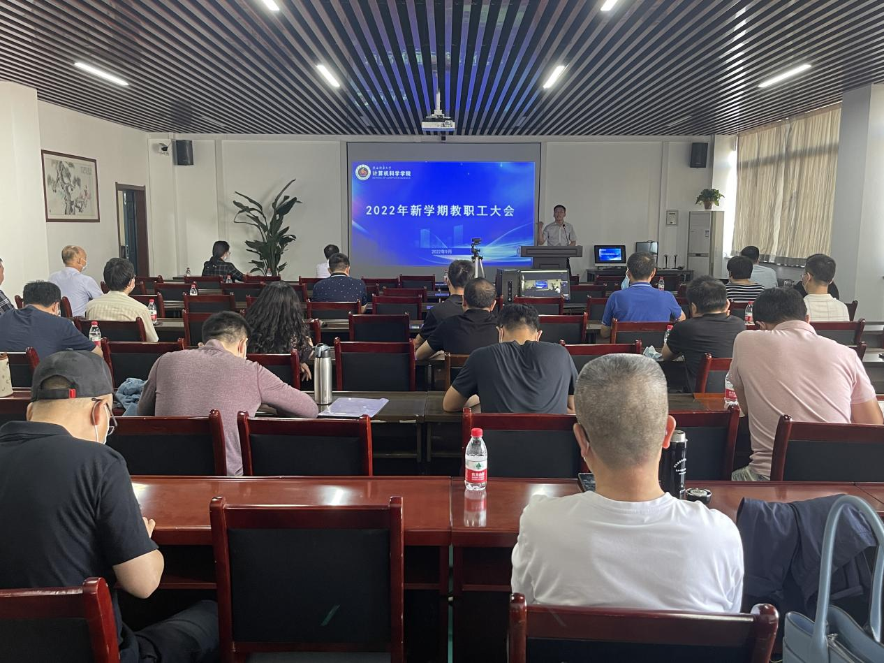 2022年9月9日下午,必赢官网在文津楼3425报告厅和3408会议室召开新学期教职工大会,学院领导班子及全体教职工参加了此次会议,会议由党委书记王耀明主持。