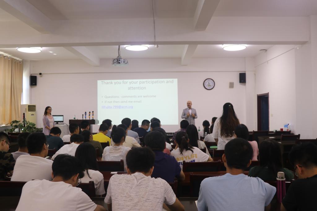 8月15日上午,日本岩手县立大学 Hamido Fujita教授应必赢官网副院长雷秀娟教授邀请在必赢官网报告厅做了题为“New Challenges in Machine Learning: Multiclass-Classification for Risk Predictions in Health Care Applications”的学术报告。报告由雷秀娟教授主持,学院部分教师、博士、硕士研究生参加了本次报告会。