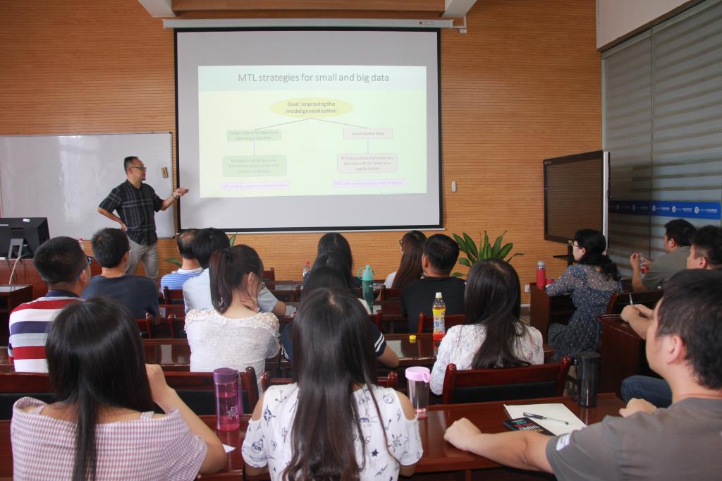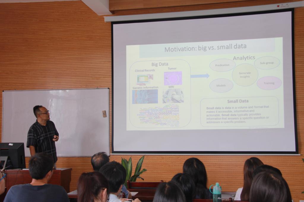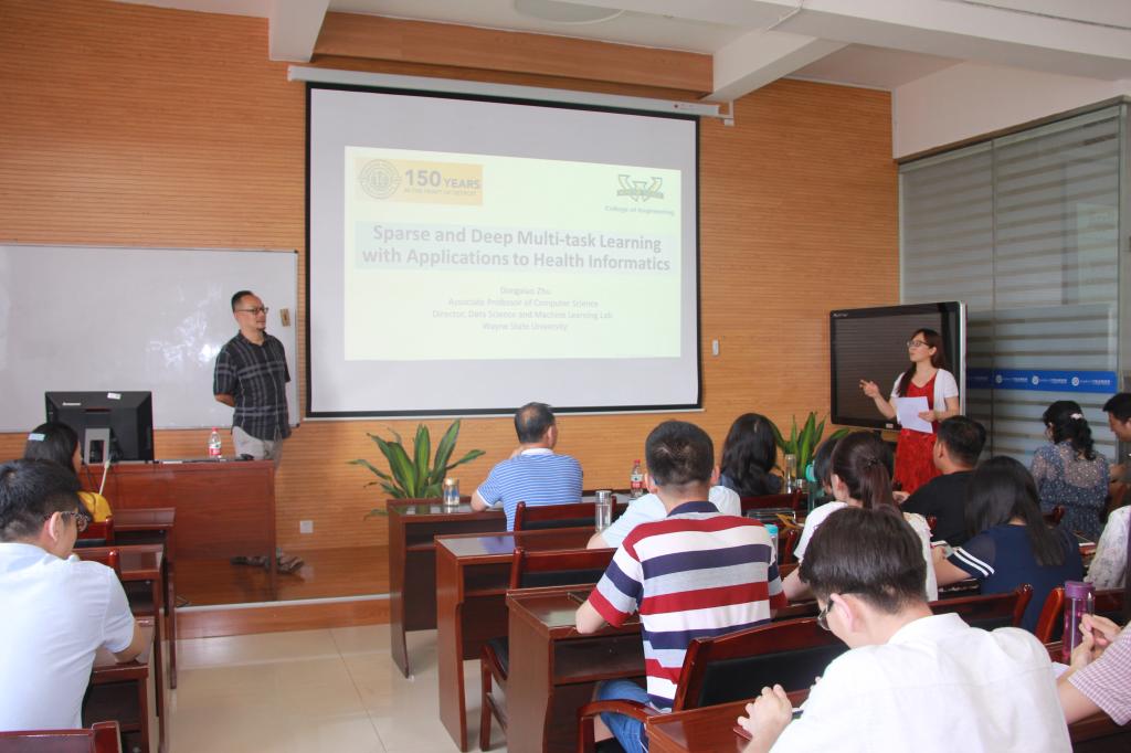 2018年6月28日,美国韦恩州立大学知名教授朱冬宵老师在必赢官网文津楼三段628报告厅做了题目为《Sparse and Deep Multi-Task Learning with Applications to Health Informatics》的讲座。本次讲座由必赢官网副院长雷秀娟教授主持,学院相关教师、研究生聆听了本次报告会。报告前,雷院长发表了热情洋溢的欢迎辞,向大家介绍了朱冬宵教授的基本信息和成就。
