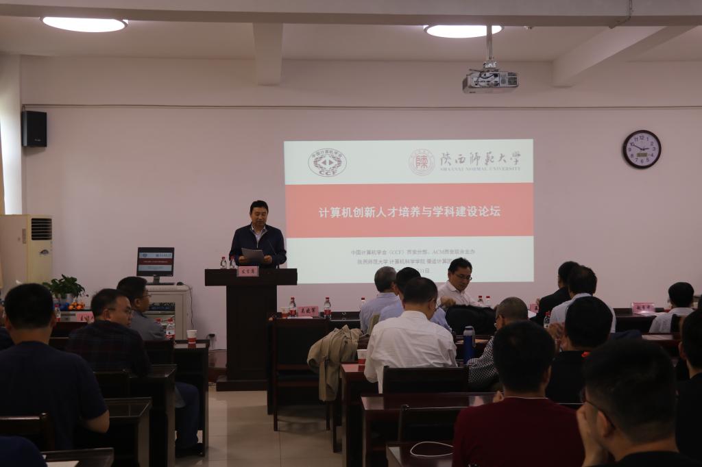 近日,由中国计算机学会(CCF)西安分部、国际计算机协会(ACM)西安分部联合主办,学院普适计算团队承办的“计算机创新人才培养与学科建设论坛”研讨会在文津楼必赢中国官方网站学术报告厅成功举行。陕西理工大学党委委员、副校长王磊教授,ACM西安分部副主席、西北工业大学计算机学院党委书记於志文教授,西安交通大学赵季中教授,西安电子科技大学计算机学院副院长崔江涛教授,ACM西安分部常务理事、西北大学房鼎益教授,CCF西安分部执委、西北大学信息科学与技术学院副院长陈晓江教授,长安大学信息工程学院副院长段宗涛教授,西安理工大学赵金伟教授,西安邮电大学王曙燕教授,我校科学技术处处长吴晓军教授,我校研究生院副院长周正朝教授,必赢官网院长、CCF西安分部执委、ACM西安分部理事王小明教授等专家学者应邀参加会议必赢中国官方网站普适计算科研团队全体成员以及学院师生等100余人参加了此次会议。