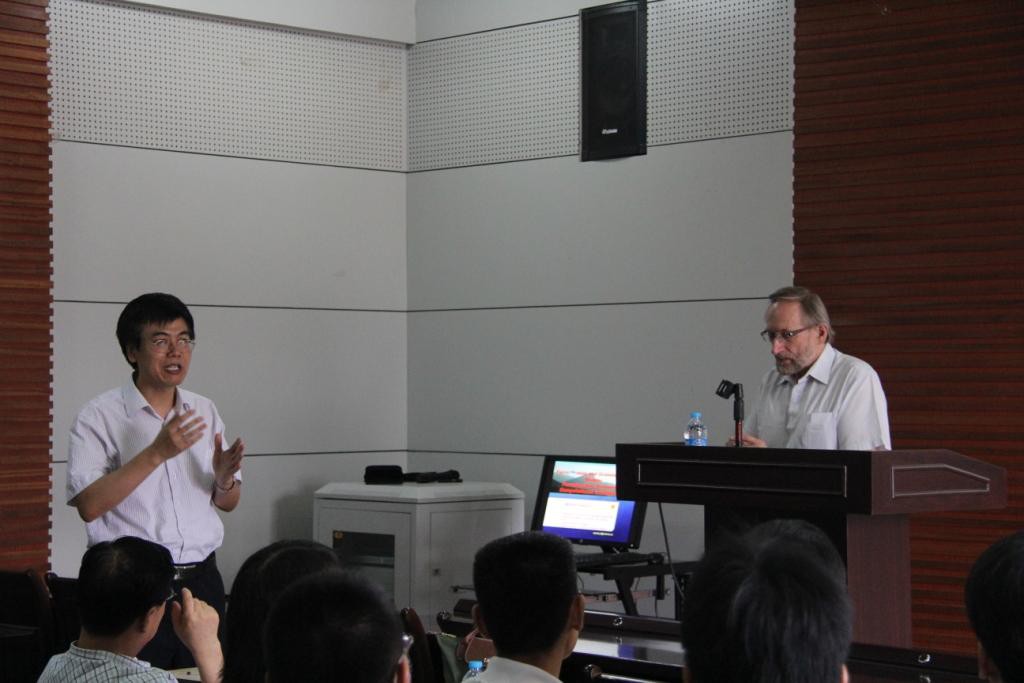 Witold Pedrycz教授本次报告题目为《模糊模型和粒化模糊模型:寻求计算智能的新途径》。在报告中,Witold Pedrycz教授首先介绍了模糊建模、信息粒、信息粒化和粒化计算等相关概念,并结合智能数据分析、图像处理和问题约化等背景给出了一些生动的例子。他指出信息粒可以在不同的形式框架中获得实现,包括区间、模糊集、粗糙集、阴影集和概率分布函数等,而粒化计算则致力于提供处理不同形式信息粒的统一理论构架。随后,Pedrycz教授从信息粒化的合理性准则、信息粒化的分配机制和信息粒化层次的提升这三个方面详细解释了粒化计算中的若干基本原则。最后,Pedrycz教授还结合模糊聚类介绍了关于算法实现的一些具体问题。