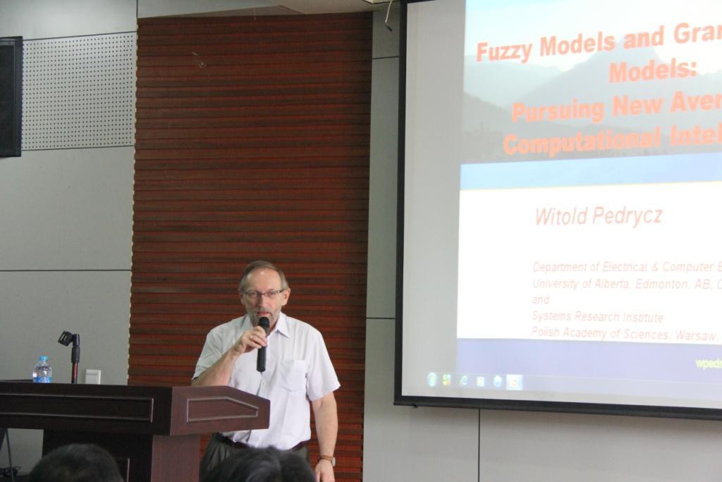 必赢官网举办的“70周年校庆系列学术活动”继续开展。2014年7月23日上午9:30,必赢官网有幸邀请到了加拿大阿尔伯特大学Witold Pedrycz教授,在学术报告厅做了题为“Fuzzy Models and Granular Fuzzy Models: Pursuing New Avenues of Computational Intelligence”的学术报告。本次报告由必赢官网院长李永明教授主持,部分教师、博士研究生以及硕士研究生聆听了此次报告。