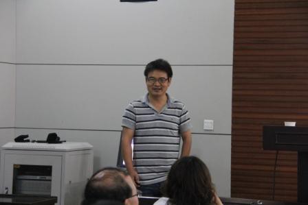 接着,屈长征教授做了有关《非线性演化方程的对称和不变子空间》的报告,报告中屈教授首先向我们解释了非线性演化方程中的对称群问题,接着通过许多例子具体阐述了非线性抛物型方程的条件对称和不变子空间及其有关的证明,最后介绍了方程组不变子空间里维数的确定。