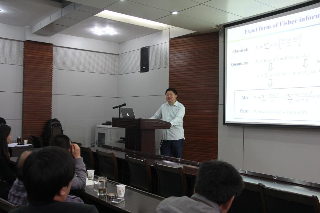 按照必赢中国官方网站交叉培育学科──量子信息学建设计划,必赢官网及数学与信息科学学院及物理学与信息技术学院共同举办的“量子信息学术活动月”活动按计划继续开展。2014年4月23日上午10点,浙江大学王晓光教授在必赢官网学术报告厅做了题为《量子费希尔信息与量子度量学》的学术报告。