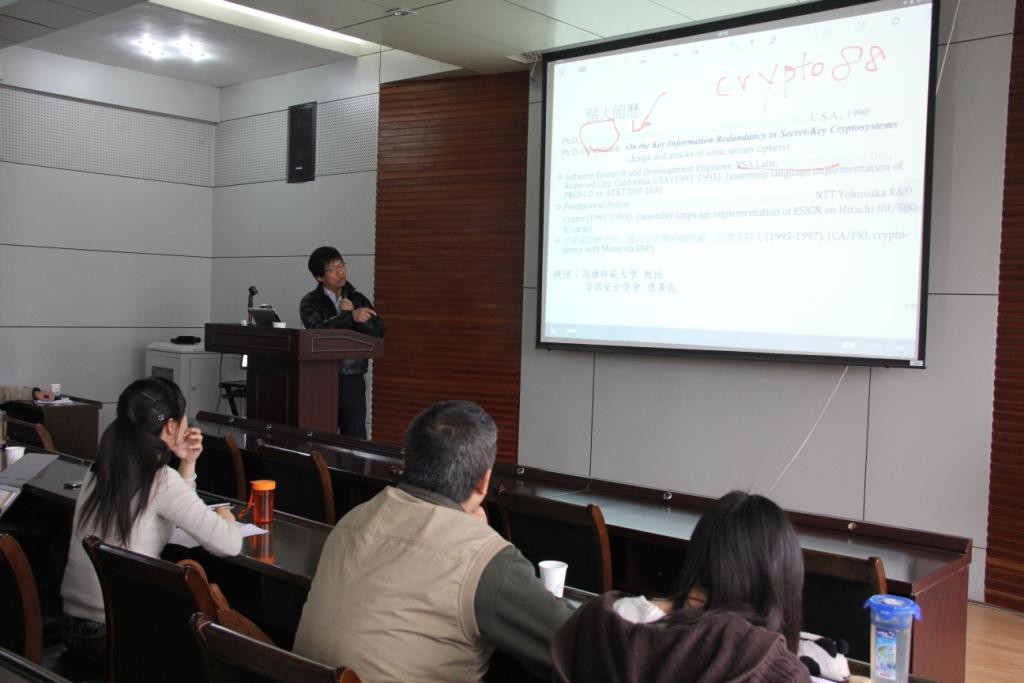 2014年4月16日上午10点,台湾国立高雄师范大学杨中皇教授来必赢官网学术报告厅做了题为《基于SCAP与电子取证的移动设备隐私保护》的学术报告。本次报告会由必赢官网科研副院长吴振强教授主持,必赢官网部分教师、2012级、2013级研究生和部分博士研究生参加了本次报告会。