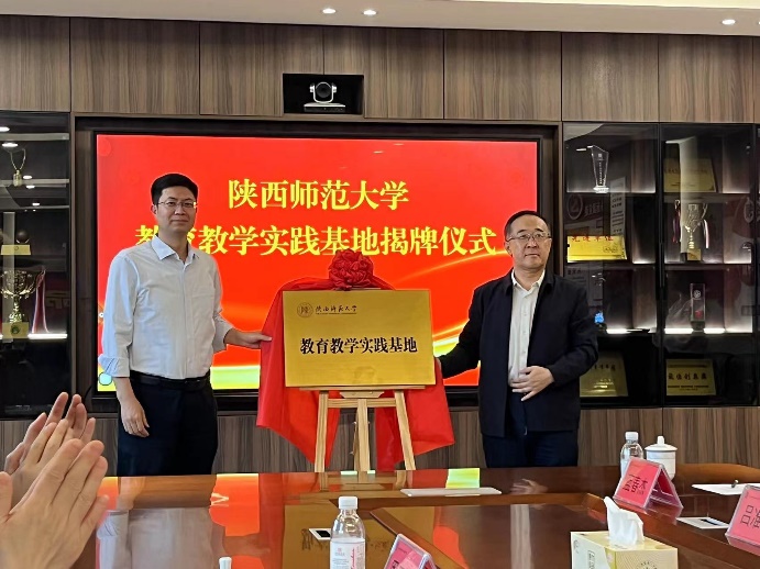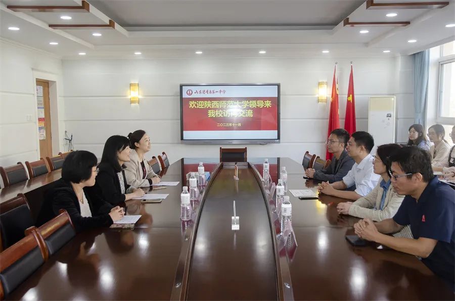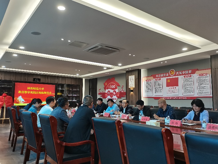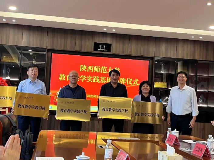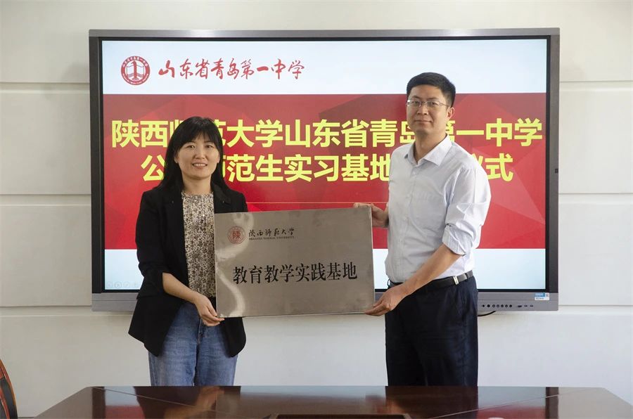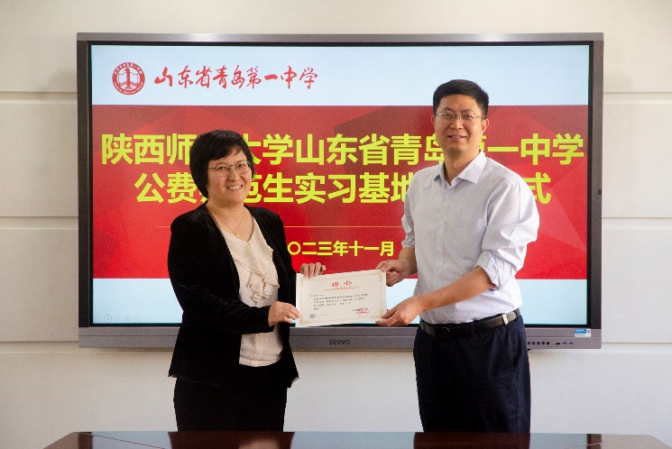 之后,我校师生与青岛一中副校长贺宁、指导教师代表等就师范生教育培养及就业相关话题展开了座谈。贺宁副校长代表青岛一中对陕师大各位老师的到来表示欢迎,贺校长介绍了学校基本情况,并希望与我校继续开展深化交流,协同培养高质量师范生。李鹏副院长在座谈中感谢青岛一中对实习生的重点培养和对师大实习工作的大力支持,使实习生在教学经验、教育能力方面有显著提高,希望双方继续加强合作,为青岛为山东培养更多卓越教师,同时也希望青岛一中能为师大提供更多的优秀生源。中学指导教师代表和实习生代表均依次发言。最后,由李鹏副院长和青岛一中贺宁副校长共同为教育教学实践基地揭碑,为指导教师们颁发聘书。