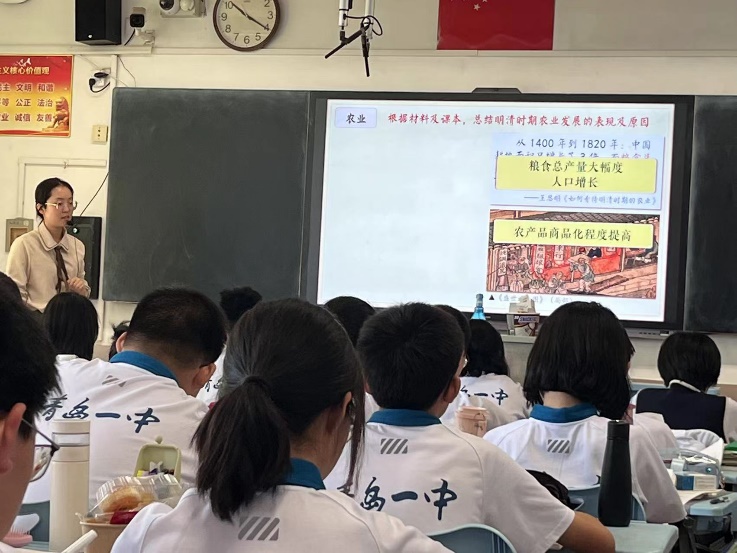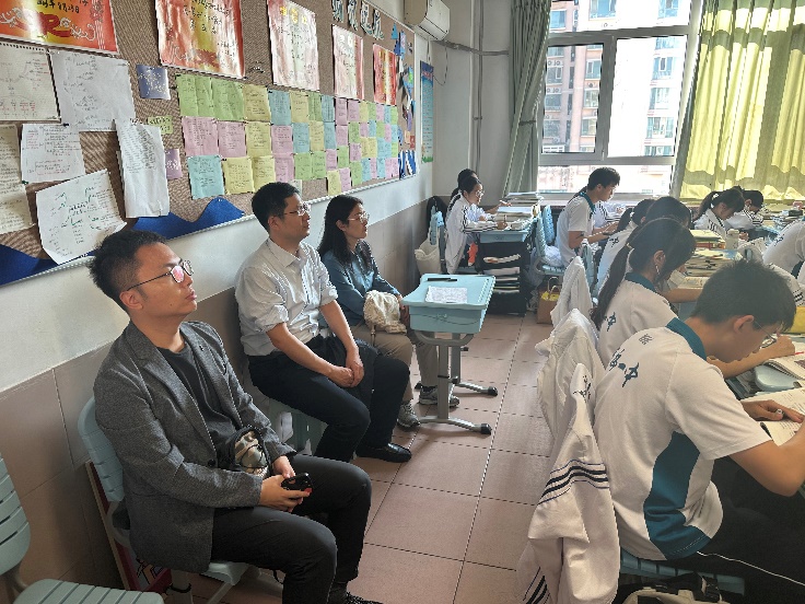 在实习带队教师周彦伟的带领下,李鹏副院长一行四人首先来到青岛一中。在办公室主任张婉婷的陪同下参观了学校并与我校实习生进行座谈,李鹏副院长代表学校向实习生发放了慰问品,询问实习生实习过程中学习生活的方方面面,并就实习、就业等相关问题展开了深入指导。随后,一行四人走进课堂,观摩我校实习生桑坤宁的现场历史课堂教学,对于桑坤宁同学用心打磨的教案、精心设计的教学环节以及精彩纷呈的讲授,四位老师赞不绝口。李鹏副院长勉励同学们主动完成学生角色到教师角色的转变,在实践中发现问题,解决问题。