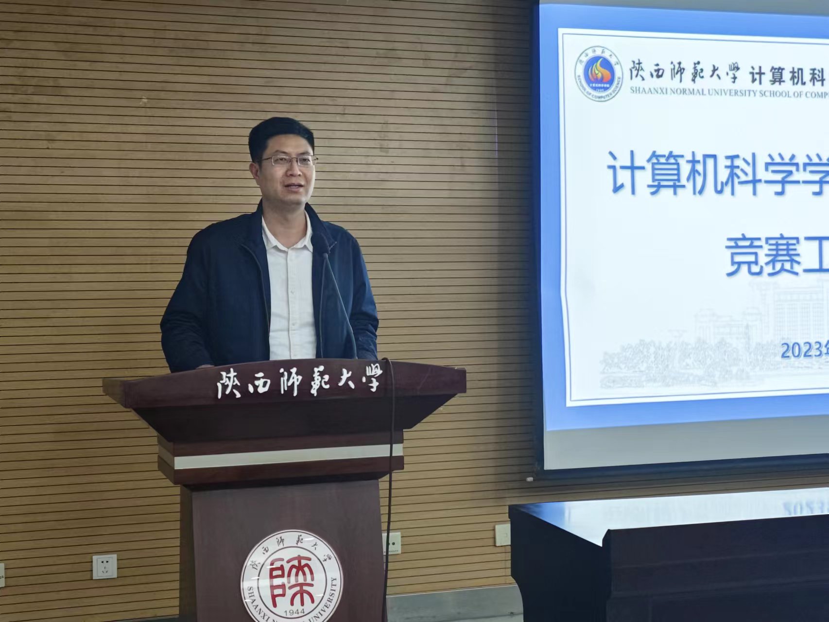 宣讲会上,与会指导教师对学院学科竞赛做逐一宣讲。王涛老师介绍了ACM程序设计类竞赛;张玉梅老师介绍了“互联网+”竞赛;武杰老师介绍了人工智能竞赛、“秦岭创客工作室”、大创项目;杨楷芳老师介绍了计算机设计大赛;雷鸣老师介绍了师范生教学大赛、微课大赛;罗宇老师介绍了数学建模竞赛。李鹏副院长做总结发言,勉励2023级同学们勤奋学习,积极参加学科竞赛,以赛促学,提升个人的科学研究能力,为走稳、走好学术道路打好基础。
