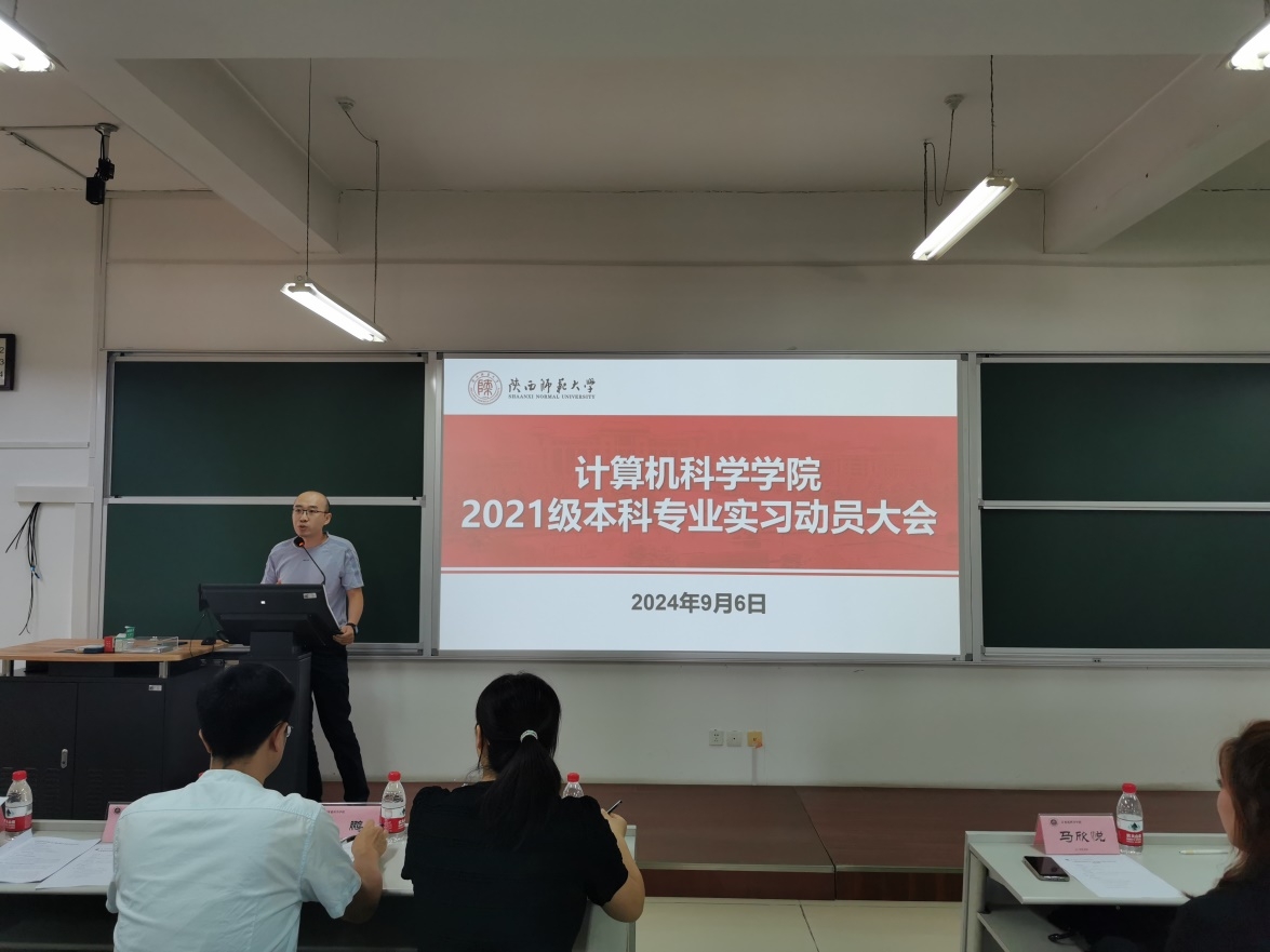 2024年9月6日,必赢官网2021级专业实习动员大会在文津楼3623顺利召开,出席会议的有教学副院长李鹏,党委副书记郭康凌,实习带队老师任杰、任美睿、代才、何雪莉、李志强,实习公司代表马欣悦,非师范班班主任王艳娥,教学秘书杨婷,以及2021级全体非师范生,会议由辅导员刘中央主持。