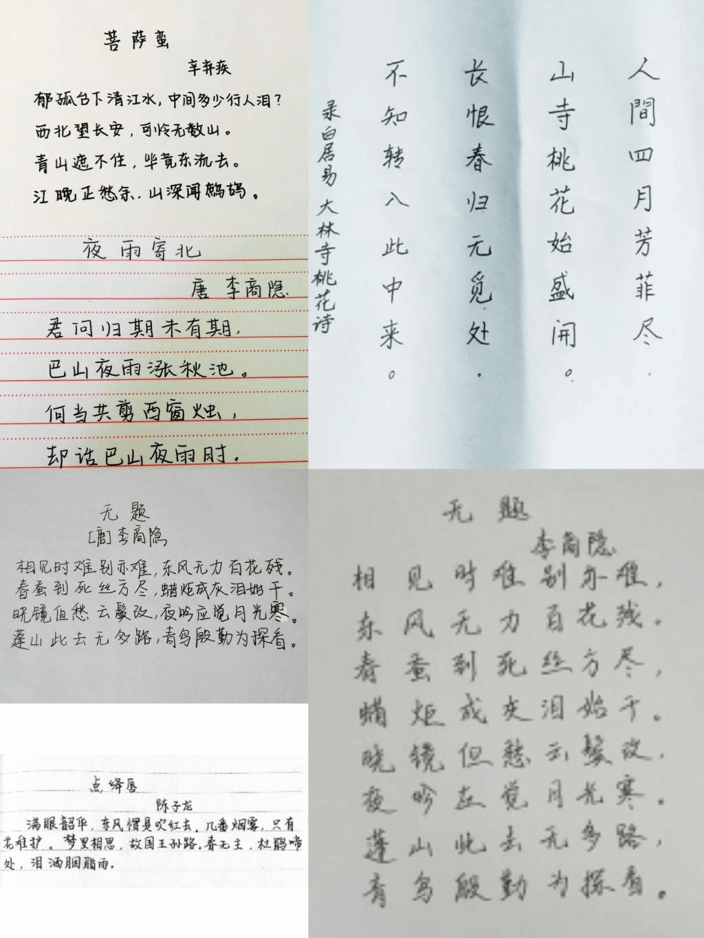 (1)硬笔书法作品:学生任选一首七言古诗,用黑色签字笔或钢笔完成作品,完成的硬笔书法作品请拍照后以图片格式提交。