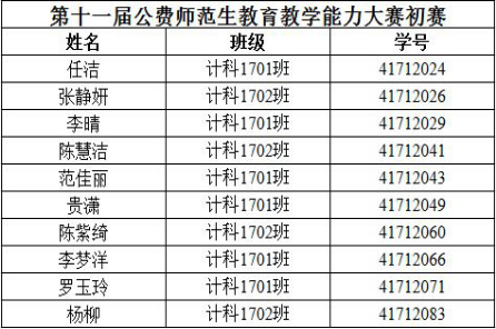 附:必赢中国官方网站第十一届公费师范生教育教学能力大赛初赛晋级名单