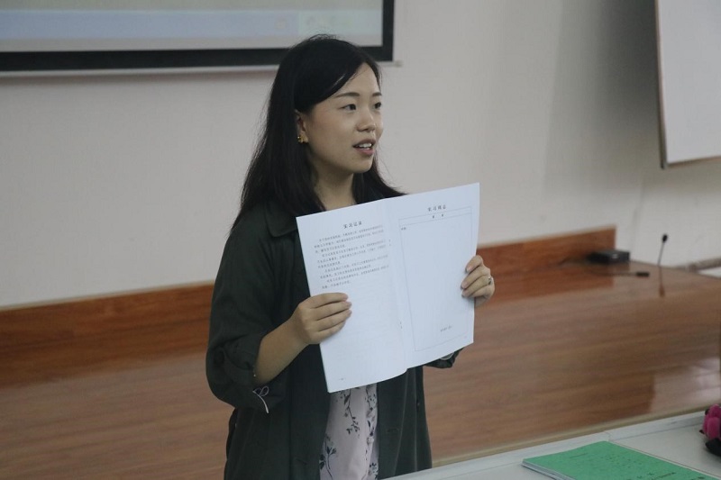 紧接着,袁冰老师提醒即将实习的同学们要保持信息的畅通,及时关注校内发布的相关信息。她特别强调了实习期间的安全问题,不论是校内实习还是校外实习,希望同学们要牢固树立“安全第一”的思想,遇到问题及时向带队老师反映,切实提高安全防范意识。