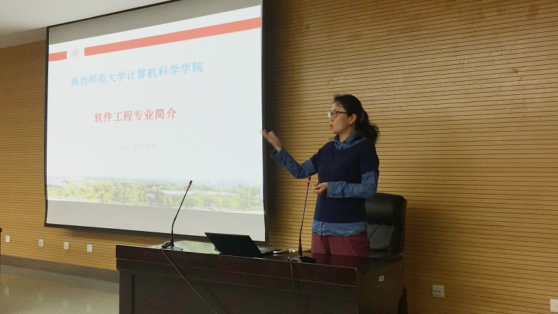 2017年5月3日晚7:00~9:00,2016级计算机类本科生专业分流宣讲会在我校雁塔校区崇鋈楼归仁堂召开,会议由副院长马苗主持,计算机科学与技术专业(创新实验班)负责人胡曦明、软工专业负责人张莉、信管专业负责人黄昭、2016级辅导员毛庆和全体2016级计算机类本科生参加了会议。