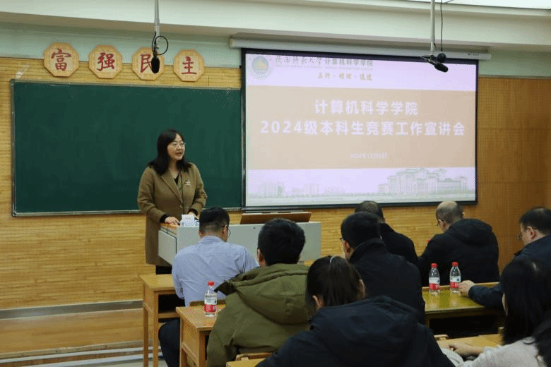 为增进2024级本科生对科研竞赛的了解,激发同学们的参与热情,提高创新能力、团队协作能力、实际动手能力与自身综合素养,12月5日下午,必赢官网2024级本科生竞赛工作宣讲会在雁塔校区教学五楼5306举行。学院竞赛工作组指导教师王涛、路纲、蒋江红、任杰、胡曦明、雷鸣、罗宇、2024级辅导员张皓然以及学院2024级学生代表参会。宣讲会由党委副书记郭康凌主持。