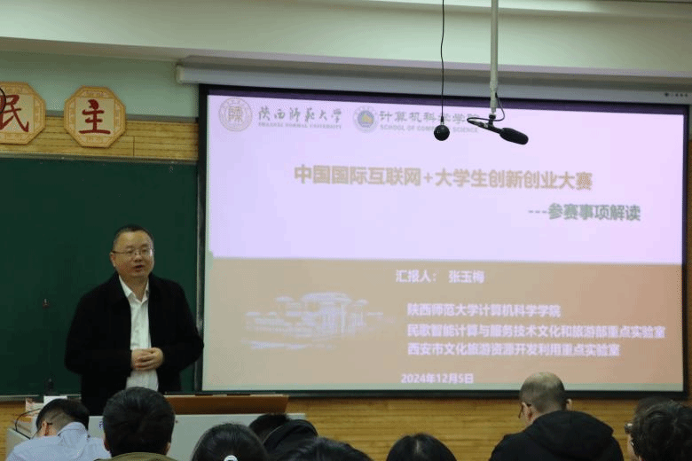 任杰向同学们介绍了秦岭创客工作室。他通过展示工作室学生所取得的优异成绩,展现了秦岭创客工作室作为创新创业平台与资源库,在提升当今毕业生实践能力方面发挥着极为重要的作用。任杰老师有针对性地对师范生与非师范生进行了不同比赛的介绍,号召同学们在竞赛中不断成长进步。