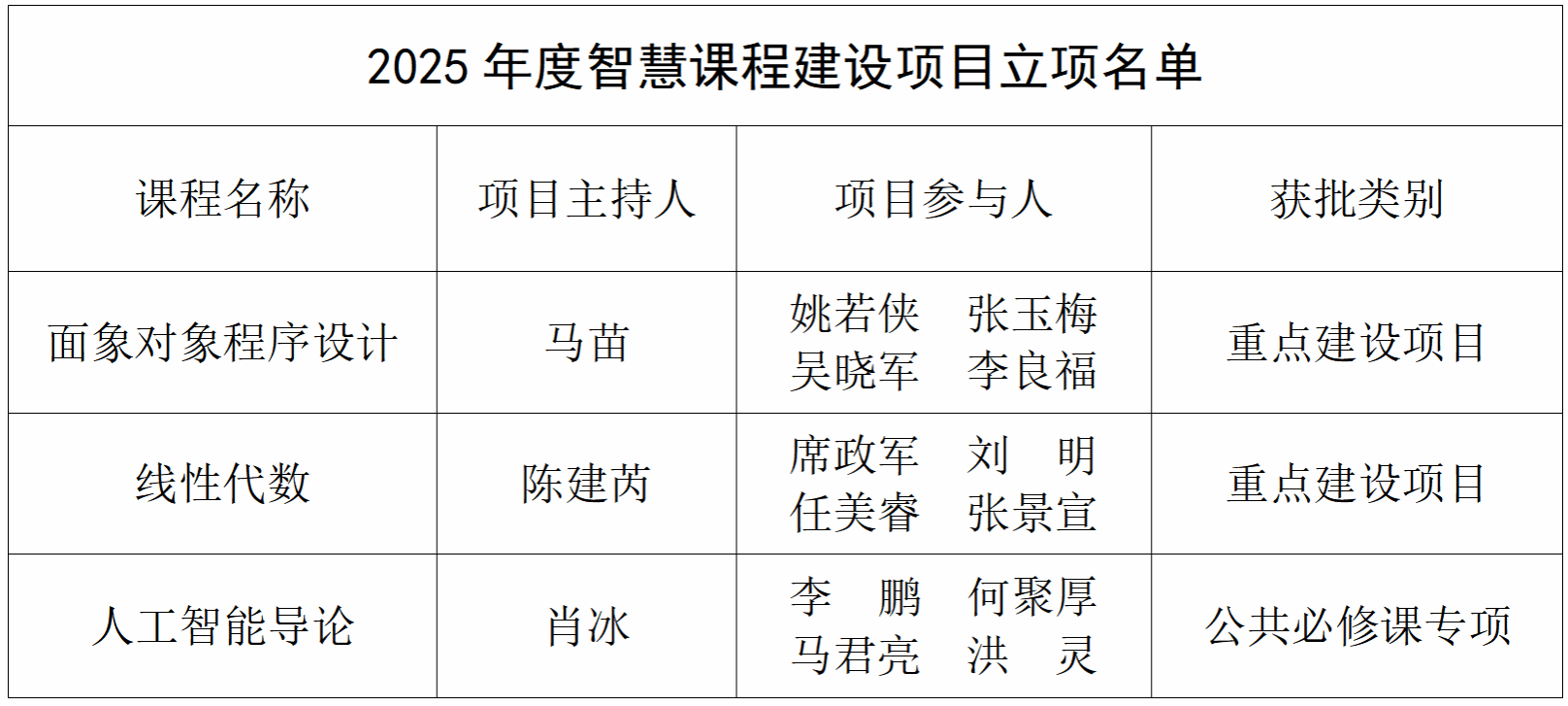 根据《关于开展2025年度智慧课程建设项目申报的通知》相关要求,经个人申报、学院推荐、专家评审和结果公示等环节,全校共立项智慧课程建设项目56项,专业知识图谱建设项目8项,必赢官网获批情况如下。