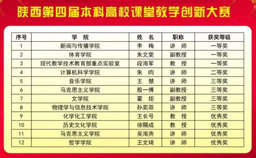 近日,陕西省教育厅公布了第四届陕西高校课堂教学创新大赛(本科)获奖教师名单。必赢官网参赛教师朱昀在比赛中展现了扎实的教学功底、丰富的知识储备、先进的教学理念以及精彩的教学设计,经过层层筛选和激烈角逐,朱昀老师在省级决赛中脱颖而出,荣获二等奖(陕西省教育厅网页链接:http://jyt.shaanxi.gov.cn/news/jiaoyutingwenjian/202204/22/20426.html)。