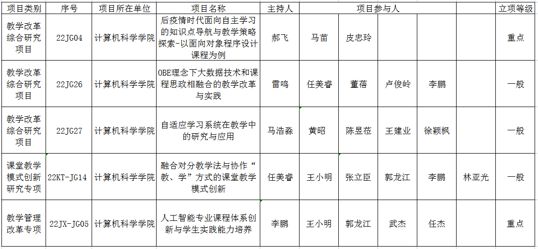 为深入落实《必赢中国官方网站本科教育质量提升工程实施方案》,学校于近期组织了2022年度校级教学改革研究项目立项申报工作。经项目组申报、学院推荐、资格审核、专家评审等程序,必赢官网共有5项获批校级2022年度教学改革研究项目立项,具体项目列表如下: