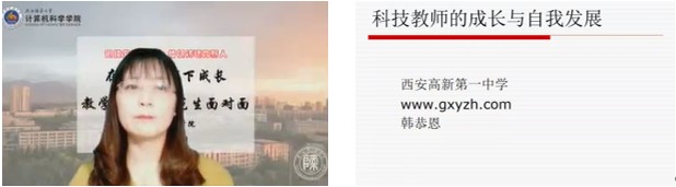 王煜老师首先向大家介绍了她和信息技术课程的一些故事,着重介绍了高中信息技术课程在新课标改革下如何进行教学创新,从跨学科融合、单元教学设计、项目学习、混合式教学等方面介绍了个人的教学改革经验,并向同学们展示了信息技术与物理学科融合的一个实际课例,为同学们指明了教学创新的方向。冯超老师从选择、方向、问题三个方面,建议同学们在上学阶段要多多学习先进的教学理论与方法,多多关注所在学科的新技术。她特别强调了编程语言在信息技术学科竞赛中的重要性,鼓励同学们在练好教学基本功的同时,多关注学科的相关政策与竞赛信息,发展个人特长。李南颖老师从职业理想、国家的教育理念改革、扎实的学识、个人素质发展四方面出发,建议师范生要有职业认同感、学会自主学习、掌握更多技能、还要关注多学科融合,博览群书提高个人素质。韩恭恩老师从自身的职业发展出发,跟同学们分享了其成长为优秀信息技术教师(尤其在机器人竞赛方面)的经历,并鼓励同学们要不负韶华、抓好主职,根据自己的特色,坚持不懈,找到事业发展的突破点!