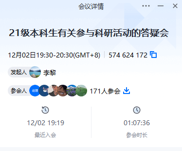 此次会议由21级辅导员刘中央老师主持。会上,21级班主任李黎副教授首先从同学们关注的问题出发,详细介绍了学院科研团队现状、科研工作一般要求、参与科研活动的多种途径等,并在知识储备和科研能力的提升等方面给本科生提出了诸多建议。之后,李鹏副院长指出,学院鼓励学有余力的本科生积极加入学院教师的科研团队,提高动手实践水平,初步培养科学研究能力。这既有利于本科生创新能力的发展和成果产出,又有助于培育研究生后备力量,具有重要的意义。同时,老师们也鼓励同学们抓住机会,通过实践研究取得论文、专利、软著、竞赛、项目等各类成果,提升自身综合能力。最后,两位老师就同学们提出的相关问题给予了解答。