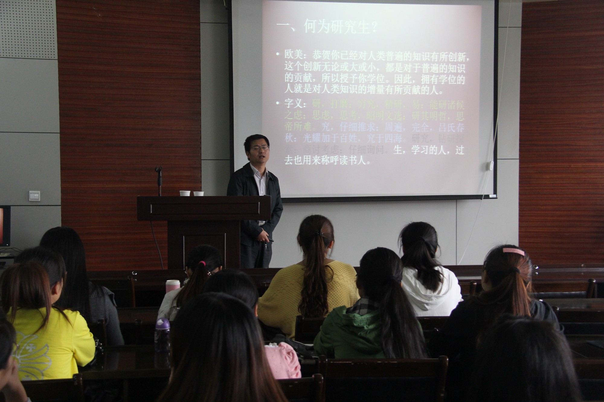 最后,胡波老师对整个报告作总结,告诫同学们要珍惜研究生的美好时光,把握自己的人生,实现自己的价值。