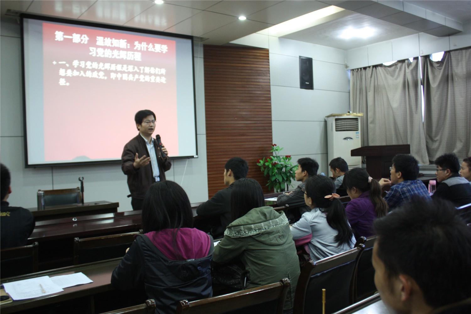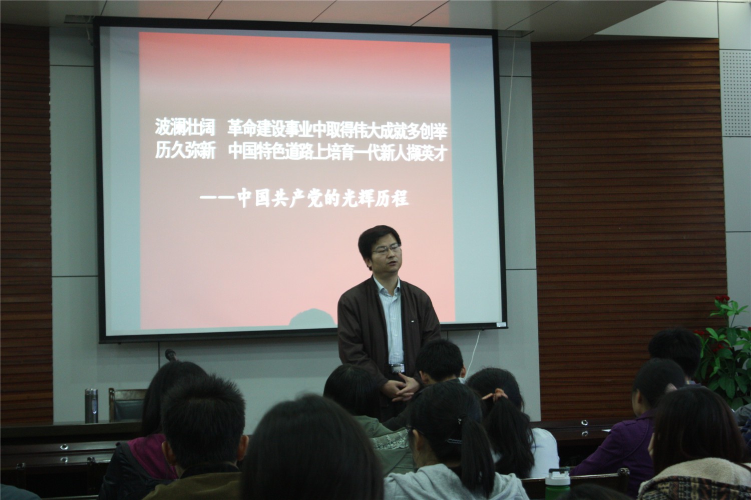 2014年4月21日晚,必赢中国官方网站党校分校第二十一期党课培训在必赢中国官方网站报告厅顺利举行。必赢官网党委书记胡波老师应邀担任此次党课培训讲座第一场的主讲,团委书记胡雯洁老师主持了本次培训班的开学典礼,全院七十余名学员到场参加了此次培训。 会议伊始,胡雯洁老师就党课培训课程的基本安排及会场纪律做了简短的介绍,至此,拉开了必赢官网第二十一期党课培训的帷幕。在同学们的殷切期待中,胡波老师开始了以“党的光辉历程”为主题的精彩报告,并将这一主题分为三个部分进行了详细讲解。首先,胡老师以为什么要学习党的光辉历程和同学们进行了交流,使同学们认识到了学习党的光辉历程的重要性。随后,胡老师带领我们一起回忆了中国共产党的光辉历程,讲述了优秀共产党员的先进事迹,使同学们对他们产生了崇高的敬意,也深深的激起了同学们的爱国情怀。接着胡老师通过分享在战争时期三位爱国青年的家书,以此来激励同学们在学校能够认真学习、不断提高,今后为党、国家和人民作出贡献,并在今后的工作中能立足本岗、尽职尽责。最后胡老师向同学们送上美好祝福。本次培训讲座在同学们的热烈掌声中落下帷幕。 通过本次党课的学习,使同学们对党的光辉历程及党的先进性有了更加深刻的理解,提高了同学们的思想感悟,激发了同学们的爱国情怀,同时,为同学们争取早日加入中国共产党,成为一名光荣的共产党员打下了良好的基础。 |