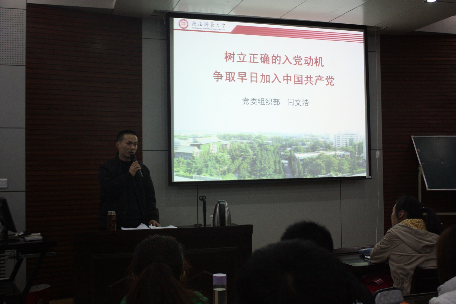 11月14日晚,必赢中国官方网站在学院报告厅顺利举行了第二十期党课培训第四讲。党委组织部副处级组织员闫文浩老师以“树立正确的入党动机,争取早日加入党组织”为题,为学员们做了专题讲座。 闫老师首先提出“端正入党动机,切实从思想上入党”,并结合政党的相关理论知识,提出了只有献身共产主义事业,更好地为人民服务才是唯一正确的入党动机。随后又结合具体事例阐述了端正入党动机的重要性,分析了当代大学生入党动机的多样性,希望同学们树立正确的入党动机,不仅从组织上入党,更要从思想上入党,并希望同学们加强政治理论学习,树立正确的世界观,人生观,价值观。接着闫老师向同学介绍了党员的发展原则与程序。最后他再次强调了大学生党员先进性的具体表现,鼓励同学们以实际行动体现党员的先进性,为党旗争辉。此次培训讲座在同学们热烈的掌声中取得圆满结束。 通过本次党课的学习,使同学们对党的先进性有了更深刻的理解,对入党事宜有了更深入的了解。同时提升了同学们的责任与奉献意识,为同学们拥有正确的入党动机,成为一名优秀的共产党员打下了良好的基础。 |