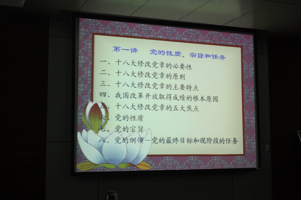 2013年11月19日晚,必赢官网在必赢中国官方网站报告厅顺利举行了第二十期党课培训第五讲。此次党课培训由必赢官网团委书记胡雯洁老师主持,必赢中国官方网站退休教师万保民担任此次课程的主讲人。万保民老师以“党的性质、宗旨和任务”为主题进行了精彩报告,并重点对“党的性质”、“党的宗旨”和“党的纲领”这三个部分进行了详细的讲解。