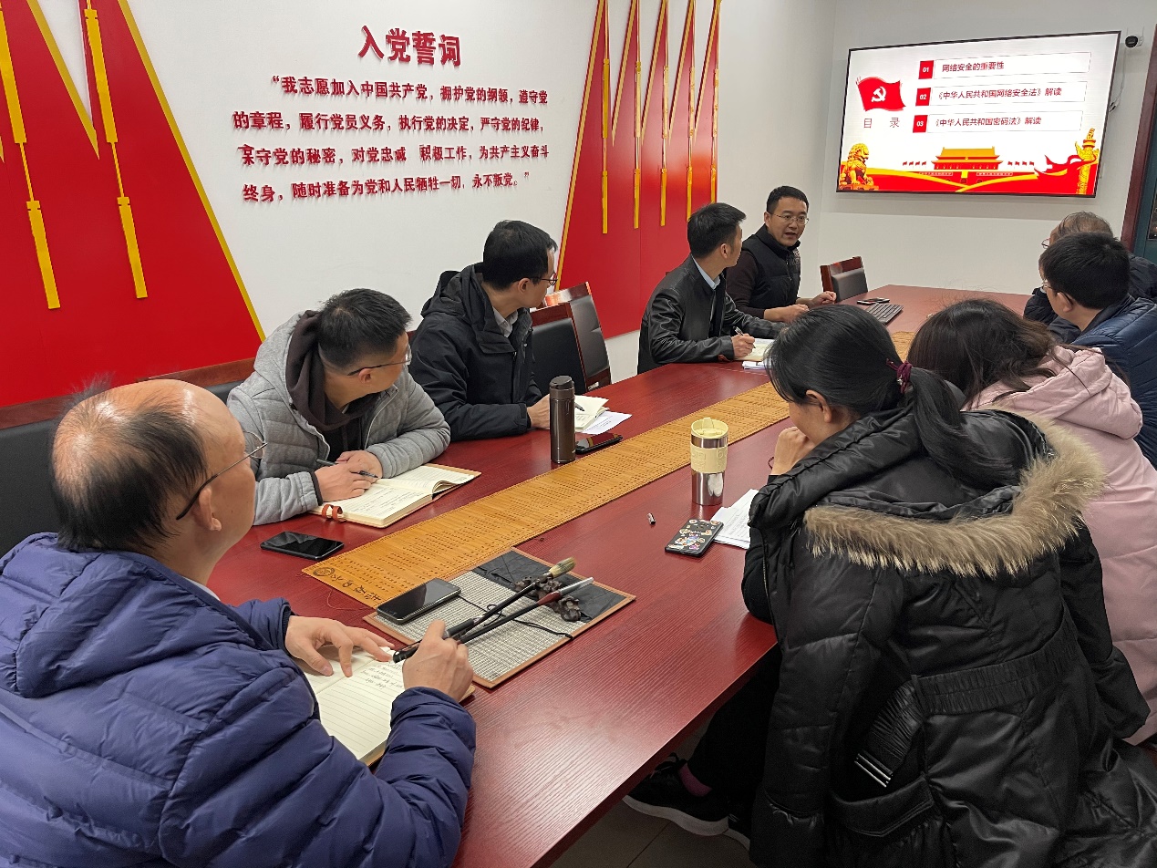 12月7日上午,必赢官网网络与信息安全党支部在文津楼3531党员活动室开展了“书记讲给党员听”的支部书记讲党课活动,深入学习贯彻《中华人民共和国网络安全法》。学院党委书记王耀明和支部党员同志共同参与学习。