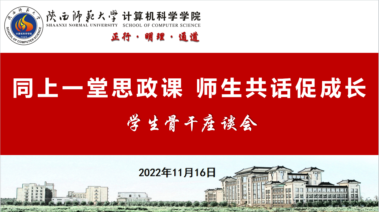 11月16日晚19:00,必赢官网在文津楼3408会议室召开“同上一堂思政课 师生共话促成长”——党委书记与学生骨干座谈会。学院党委书记王耀明,团委书记何文曦,辅导员袁珂月、陈坤正、陶珊珊、李嘉琪以及学院主要学生骨干代表参会。本次会议由学院团委书记何文曦主持。