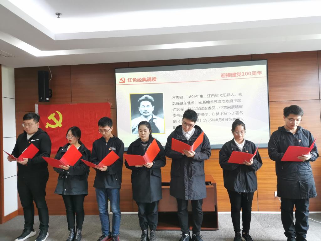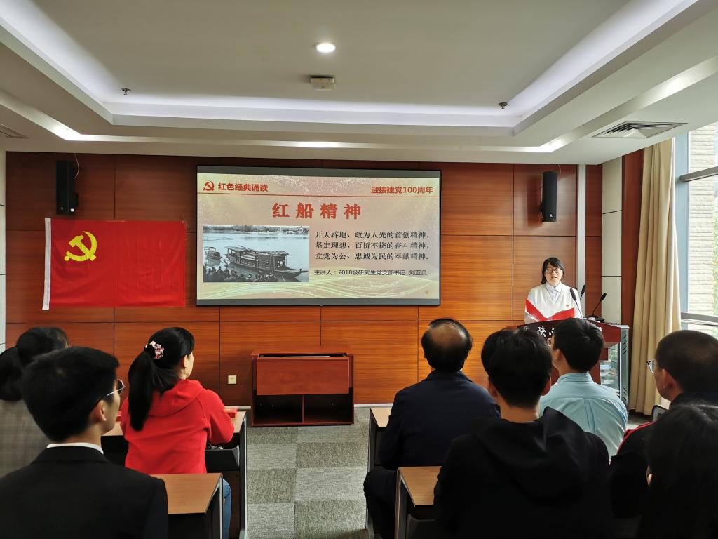 研究生支部书记刘亚灵讲解了“开天辟地、敢为人先的首创精神,坚定理想、百折不挠的奋斗精神,立党为公、忠诚为民的奉献精神”的红船精神,鼓励同学们弘扬红船精神,坚定理想信念。研究生支部预备党员诵读了《可爱的中国》,让大家在慎终追远、缅怀先辈的情怀中,不忘遗志不忘初心,为实现中华民族伟大复兴的中国梦努力奋斗。