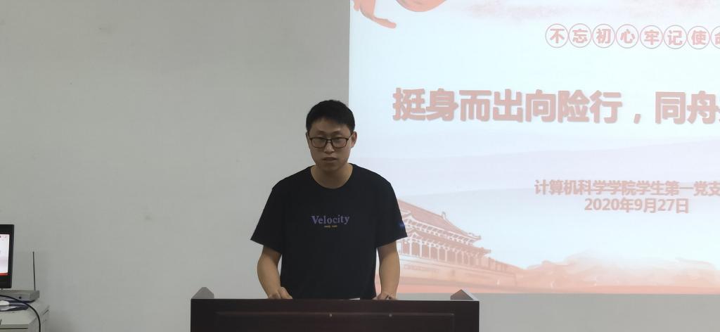 为贯彻落实《中共必赢中国官方网站委员会迎接建党100周年行动方案》文件精神,深刻认识伟大抗疫精神的重要意义,凝聚和激发学生党员团结一心、共圆伟大中国梦的强大正能量,必赢官网学生第一党支部于9月27日晚19:30在文津楼3412报告厅举行了“挺身而出向险行,同舟共济报家国”主题学习活动。本次活动由支部书记陈应权同志主持,支部全体成员参加。