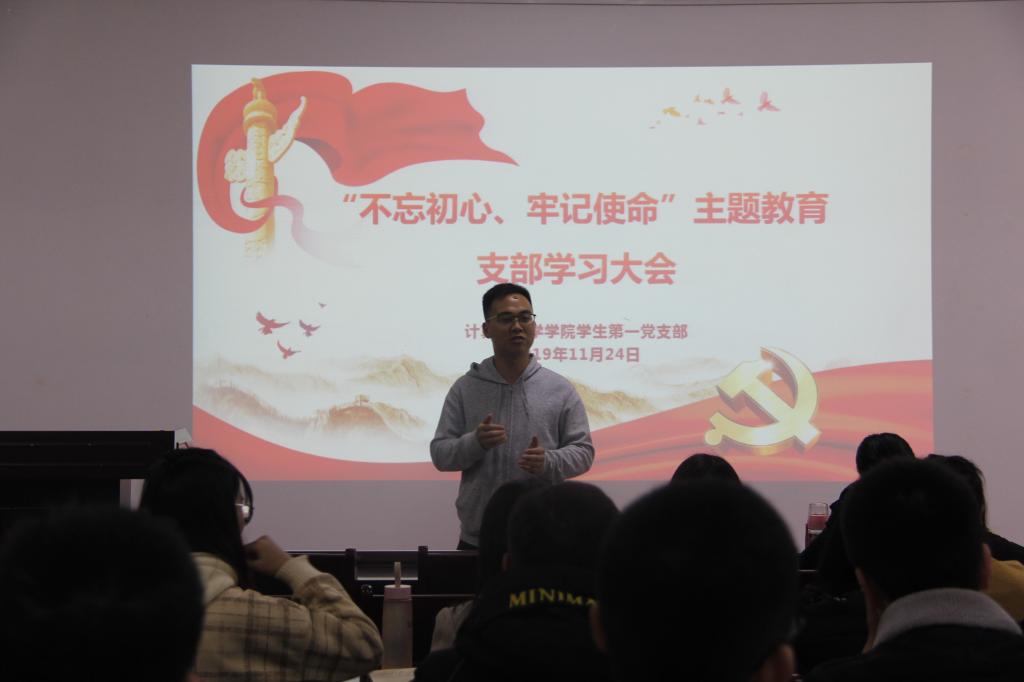11月24日晚7点,必赢官网学生第一党支部在文津楼3412室召开了“不忘初心、牢记使命”主题教育集中学习会议,我校学生处张璐老师受邀为支部党员做报告。支部全体在校党员参加了本次学习交流活动,本次学习会议由支部书记陈应权主持。