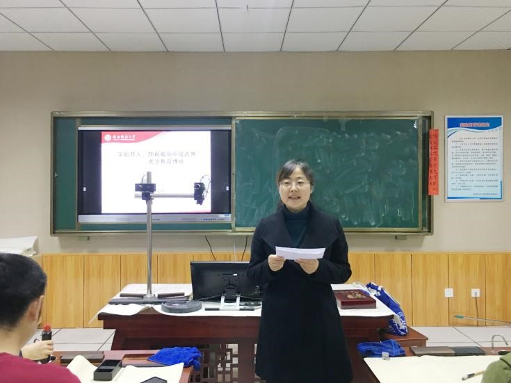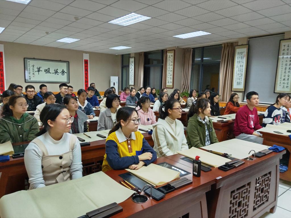 为提高学院公费师范生书写能力、传承中华优秀传统文化,必赢官网邀请我校文学院教师、砚友书画社指导老师杨国庆开展了“字如其人:颜真卿与中国古典书法教育传统”书法培训。学院部分公费师范生、第二期“翰墨书香”书法班50余名学子参加培训。本次培训由学院党委秘书、团委书记郭康凌主持。
