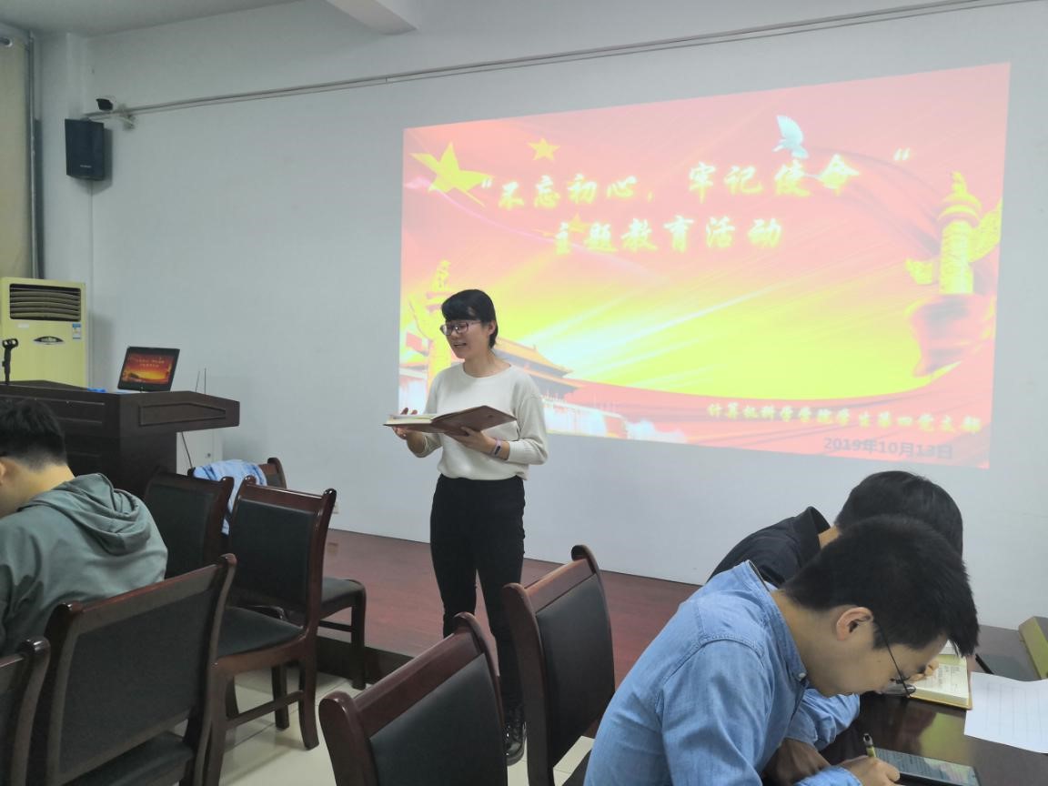 10月13日晚,必赢官网学生第四党支部于学院报告厅开展了 “不忘初心、牢记使命”主题教育学习为主要内容的支部大会。学生第四党支部全体成员参加了会议。会议由支部书记刘亚灵主持。