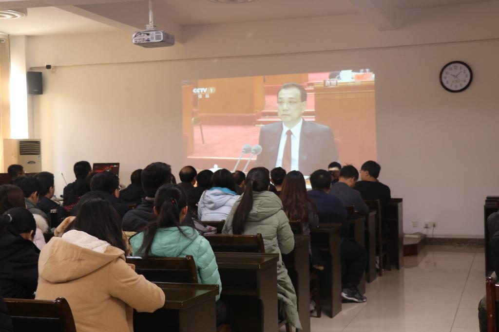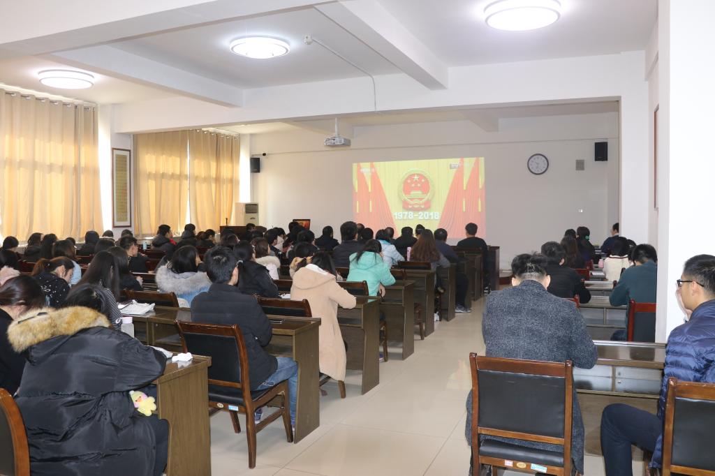 12月18日上午,必赢官网组织师生代表在文津楼四层学院报告厅集中收看庆祝改革开放40周年大会直播。学院党政领导班子、教师代表、学院办公室、学工组辅导员、本科生、研究生代表共计100余人参加了观看活动。学院各党支部、团支部、学生骨干代表通过其他形式对大会内容进行了学习。